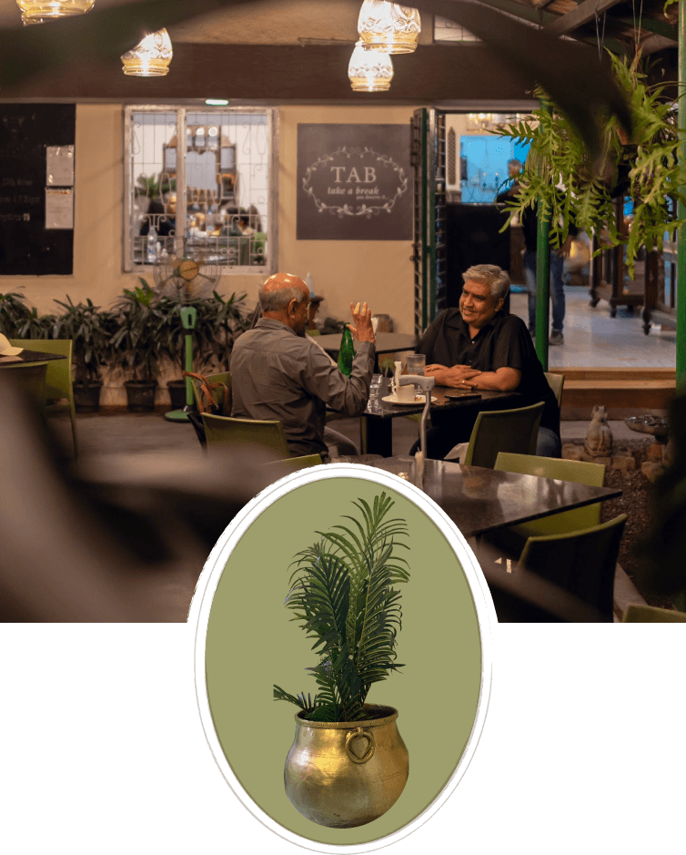 Over the years, TAB has grown into a quiet tribute to Bangalore’s old soul — whispered through antique wooden chests, the soft gleam of brass utensils, timeworn mirrors, patterned tiles, and the open verandahs of art-deco homes. Almost every aesthetic object at TAB has found its place here from the founders’ priceless family collection. Within the café, these memories linger softly, inviting you to pause, wander, and rediscover them.