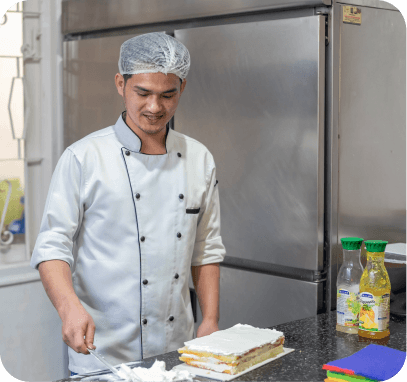The soft hum of the oven, the smell of warm bread, buttery croissants, cakes cooling on the rack — it tells you that everything here is made with intention. No shortcuts, no rush.